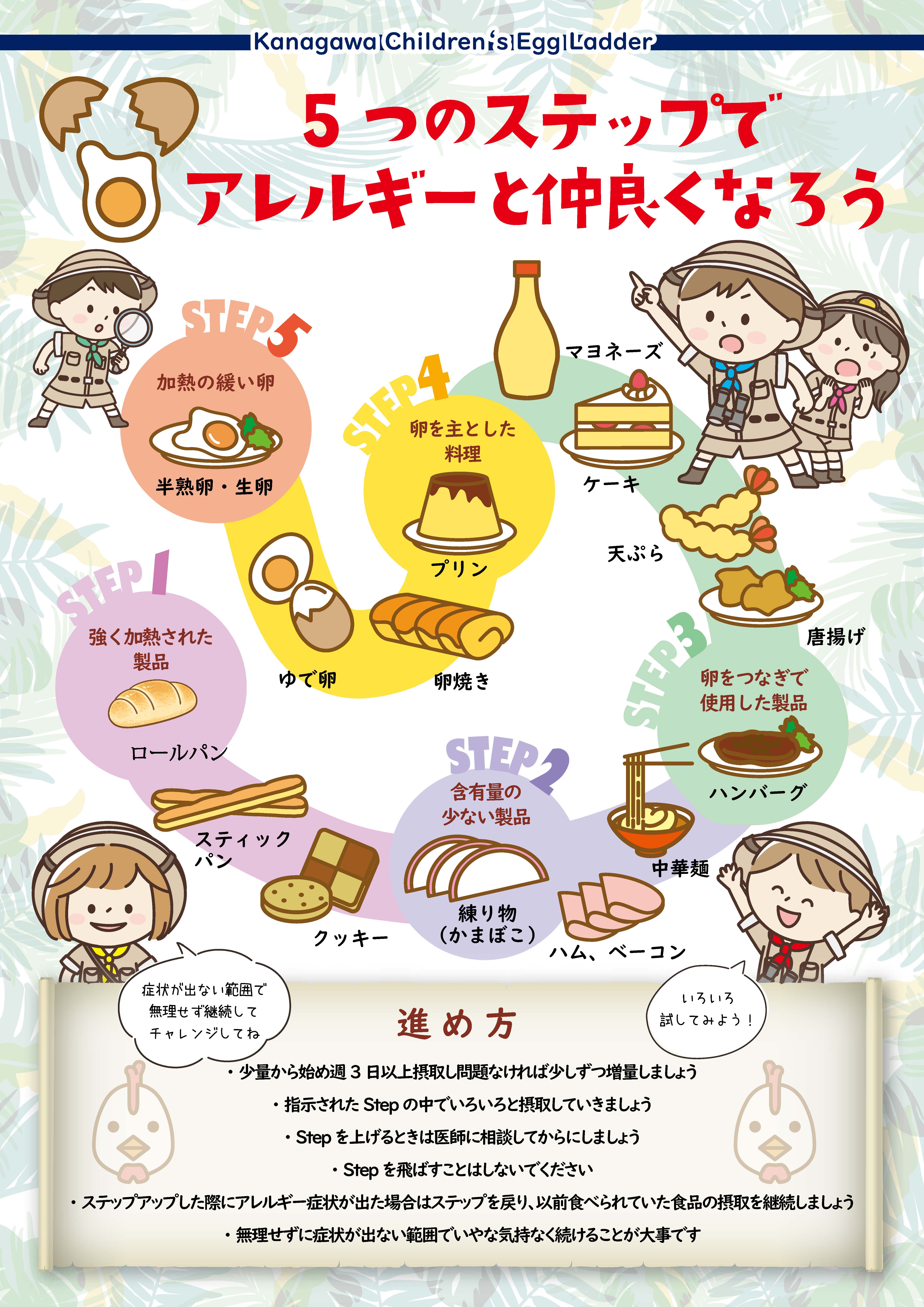 すでに、この治療方法の有用性と安全性はカナダ、イギリス、アイルランド、オーストラリアからも報告されています。私どもの施設において、2歳以下の卵アレルギーおよび卵アレルギー疑いの患者さんへの食事指導の検討では、このラダーを用いた指導方法は従来の卵そのものを摂取していく対応に比べて、副反応の頻度は少なく、卵そのものを食べられるようになる時期はほとんど変わらないという結果が得られてきています。しかも、早期から卵や牛乳含有の加工品摂取をためすことが出来るため、外食や買い物での不便さから解放される割合も多いことが分かっております。
