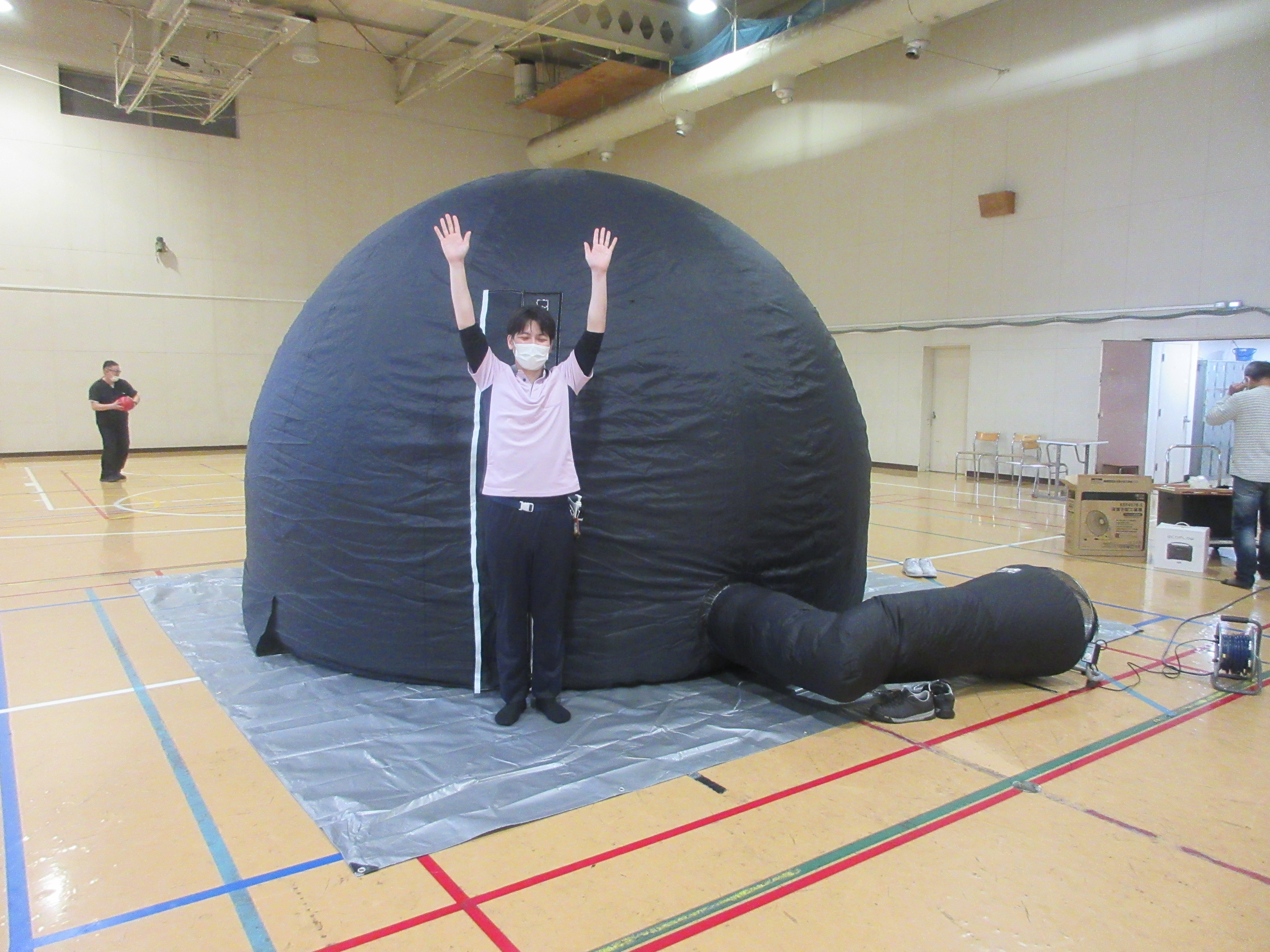 体育館に到着すると、何やら大きな黒いドームが・・・